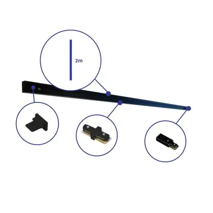 Bright Choice Rail Set 1-Fase 2 Metro Nero | incl. Tappo Di Chiusura, Connettore di Alimentazione e I-Connettore