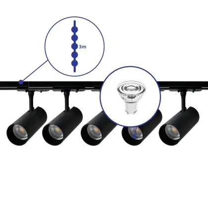 | Nome del fabbricante | Complete Straight 3-meter 1-Phase Track Set Black incl. 5x Spot fixture + GU10 2700K 3W Dim – 2x 1.5 | |