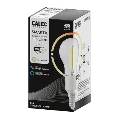Stai cercando una lampadina smart a LED con attacco E14 di alta qualità? Allora la lampadina LED Calex Smart Sferico fa per te! Questa lampadina smart ha attacco a vite E14, che la rende facile da montare, pronta all’uso e compatibile con la maggior parte di lampade e lampadari. Come se non bastasse, risparmierai notevolmente sui costi energetici, perché questa lampadina a LED da 450lm consuma solo 4,5 Watt e ha 2 anni di garanzia.