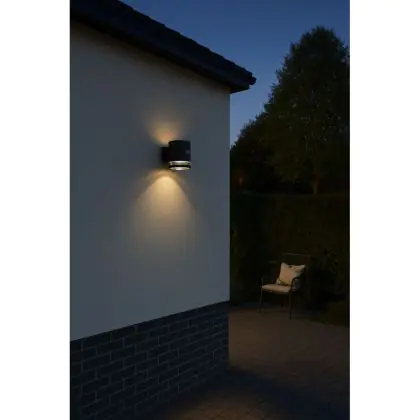 La D’Lite Solis Wall Light si distingue per la sua estetica contemporanea e la funzionalità intelligente. Si ricarica con la luce solare durante il giorno e si attiva automaticamente al rilevamento di movimento. L’illuminazione verso l’alto e verso il basso non solo migliora la visibilità, ma aggiunge anche un tocco decorativo alle pareti esterne.