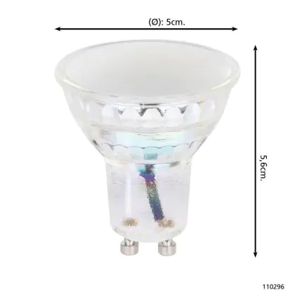 Puoi risparmiare fino al 90% tra il risparmio di energia e I costi di mantenimento grazie al basso consume di soli 5.8W e la lunga vita media utile di 15000 ore, comparandola invece con una lampada alogena GU10 con la sola durata di 2.000 ore. Inoltre le lampade LED non producono raggi IR e raggi UV dannosi per noi esseri umani tutto questo senza neanche produrre calore! Installarla è veramente semplice: ruotare la vecchia lampada GU10 di un quarto e rimuoverla dall’attacco. Successivamente inserire la lampada LED GU10 nell’attacco e girarla di un quarto per installarla. Questa è lampada di alta qualità Eglo e parte da un prezzo di . Puoi usare questo prodotto come desideri grazie alla nostra garanzia totale di2 anni da Lampadadiretta.it.