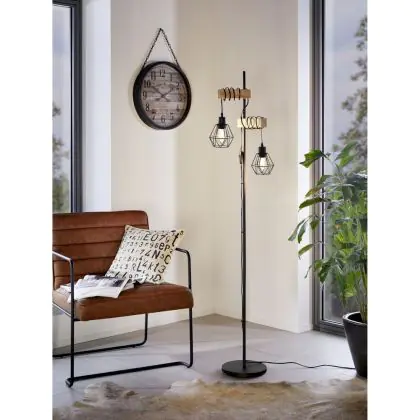 Eglo Lampada da terra Townshend 5 Acciaio Legna Nero | IP20 - Adatto per 2x E27
