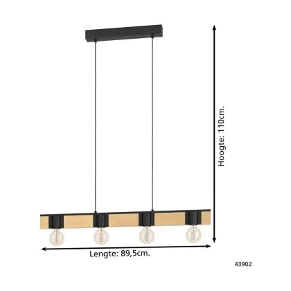Eglo Luce Pendente Bailrigg Acciaio Legna Nero Marrone | IP20 - Adatto per 4x E27