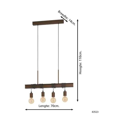 Eglo Luce Pendente Townshend 4 Acciaio Marrone | IP20 - Adatto per 4x E27