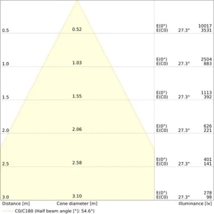 L'apertura del fascio luminoso indica l'angolo del fascio di luce proveniente da una lampada o lampadina. Si misura in gradi (D) e più piccolo è l'angolo, più piccola è l'apertura del fascio di luce.