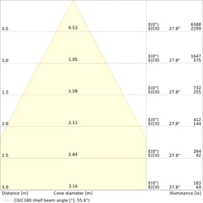 L'apertura del fascio luminoso indica l'angolo del fascio di luce proveniente da una lampada o lampadina. Si misura in gradi (D) e più piccolo è l'angolo, più piccola è l'apertura del fascio di luce.