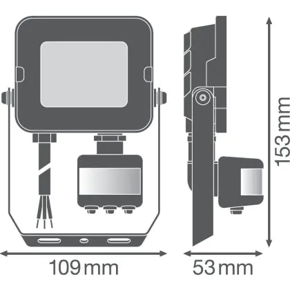 Descrizione Ledvance Proiettore LED Compatto Nero 10W 900lm 100D - 830 Luce Calda | IP65 - Simmetrico - Sensore di movimento e luce